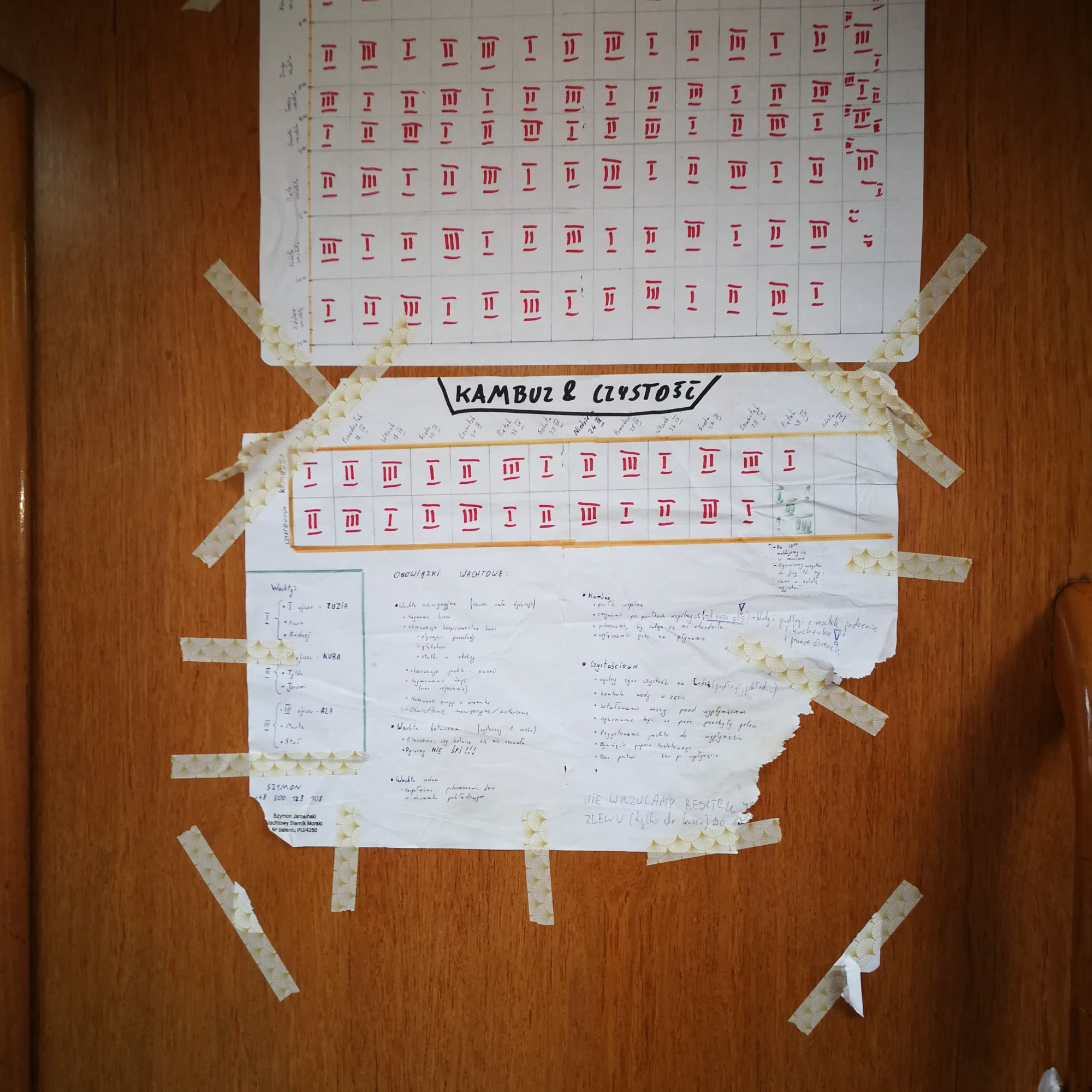 Od strony wachtowej działa to tak, że każdy ma w swoim czasie swoje obowiązki. Te przyklejone karteczki na zdjęciu powyżej przedstawiają podział zadań. To obowiązki zarówno nawigacyjne, jak też porządkowe i kuchenne. Życie na jachcie kieruje się swoimi zasadami i ma swoje wymagania. Organizujemy to imo bardzo sprawnie, więc wiadomo zawsze co, kto i kiedy powinien robić 🙂