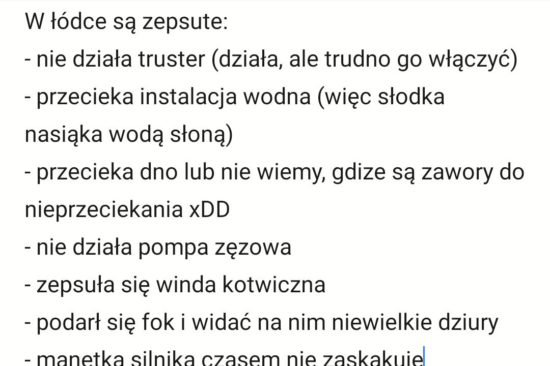 To taka robocza notatka, którą mam w galerii o tym, co mnie zaskoczyło. Jacht był stary, bardzo tani – bo póki jesteśmy studentami, chyba o to chodzi (: Także różne rzeczy mogą się stać…