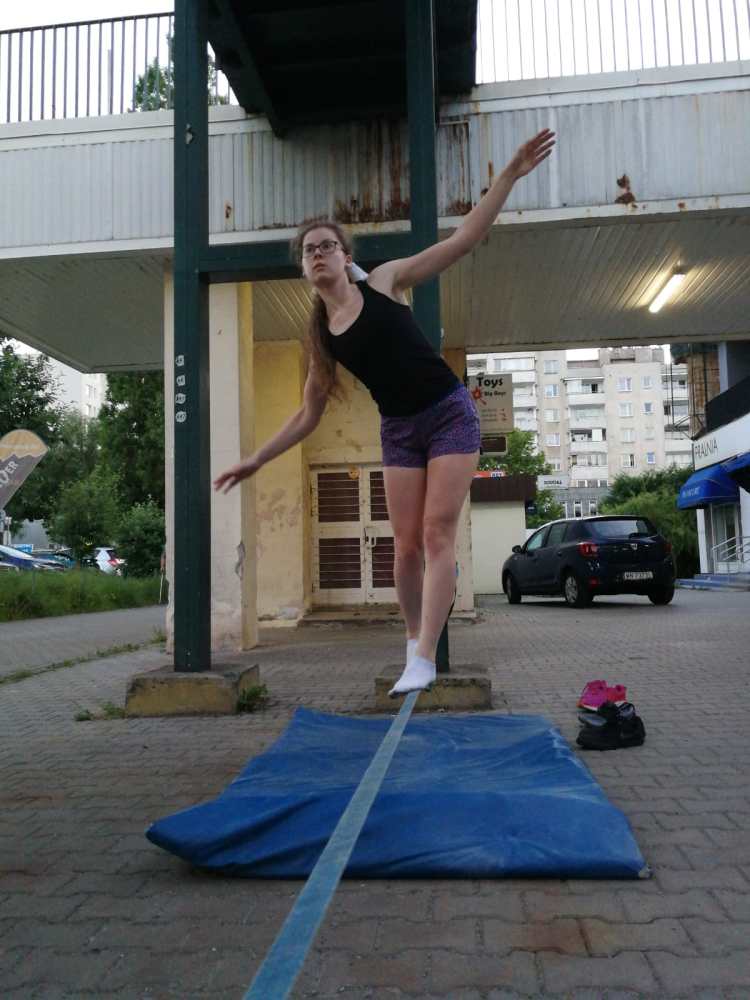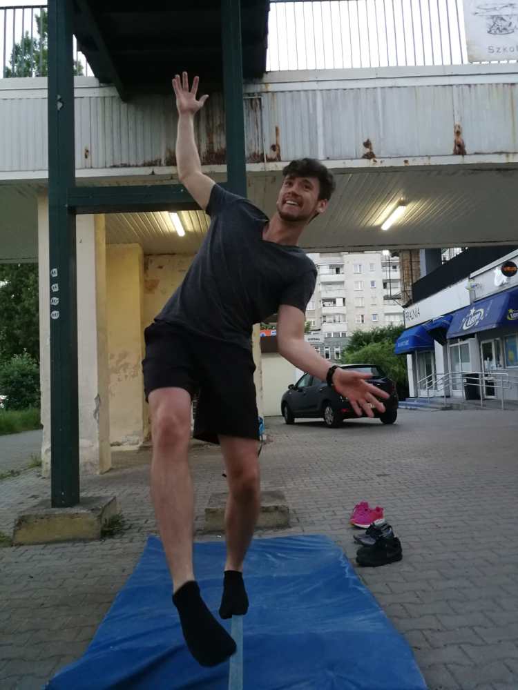Poza tym regularnie ćwiczymy poboczne umiejętności, które pomagają i we wspinaniu i w życiu w ogóle 🙂 Trenujemy równowagę – od ćwiczeń naziemnych po slackline! Ćwiczymy koordynację – żonglując i bawiąc się cyrkowymi zabawkami. 🙂 Ogólnie rzecz ujmując – nie nudzimy się ani przez chwilę!