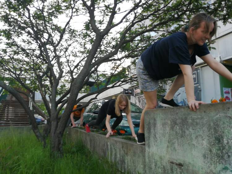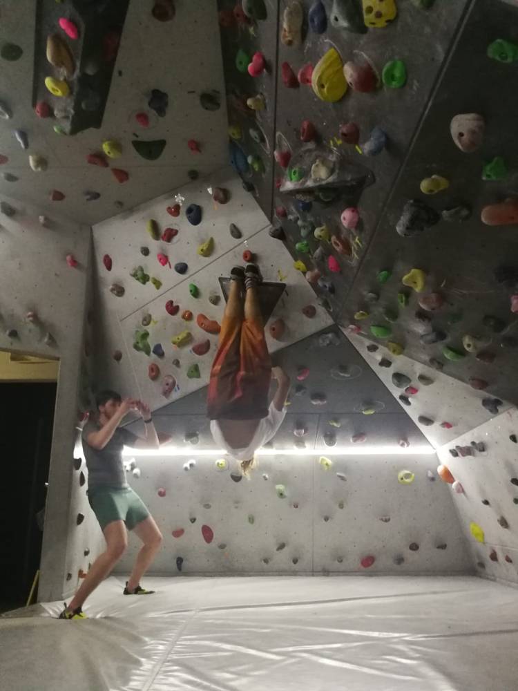 Głównie trenujemy w Bulderbarze. Przestrzeń mamy tam wręcz idealną! Jest miło, kameralnie 🙂 Podłączamy się do głośnika – często jesteśmy zupełnie sami 🙂